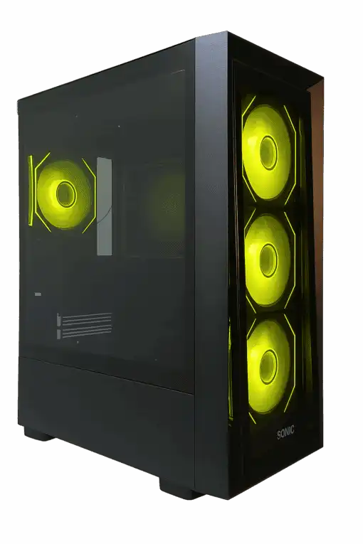 The Sonic C05 Gaming Case in black is engineered for builders who want bold aesthetics, ample airflow, and versatile hardware support. Equipped with four pre-installed ARGB fans, this case delivers striking lighting effects and efficient cooling performance to...