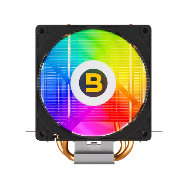 4 direct-touch copper heat-pipes pull heat away from i9, Ryzen 9, or latest-gen chips; 55-fin aluminum stack drops temps up to 34 °C below stock coolers.