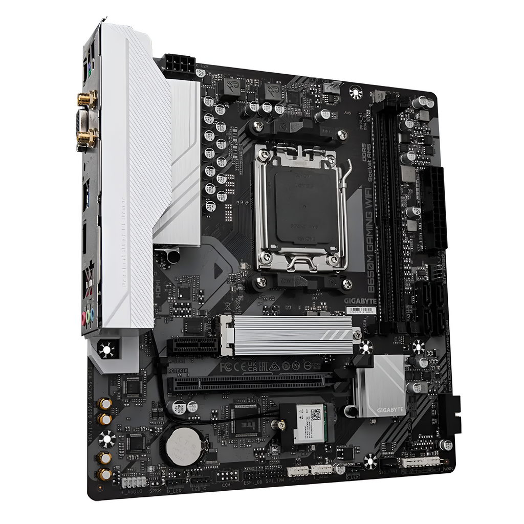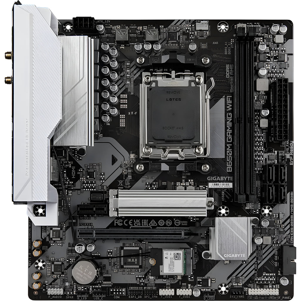 - B650M GAMING WIFI board – 2×SATA, Wi-Fi antenna, M.2 screws, manual & 3-year Gigabyte warranty