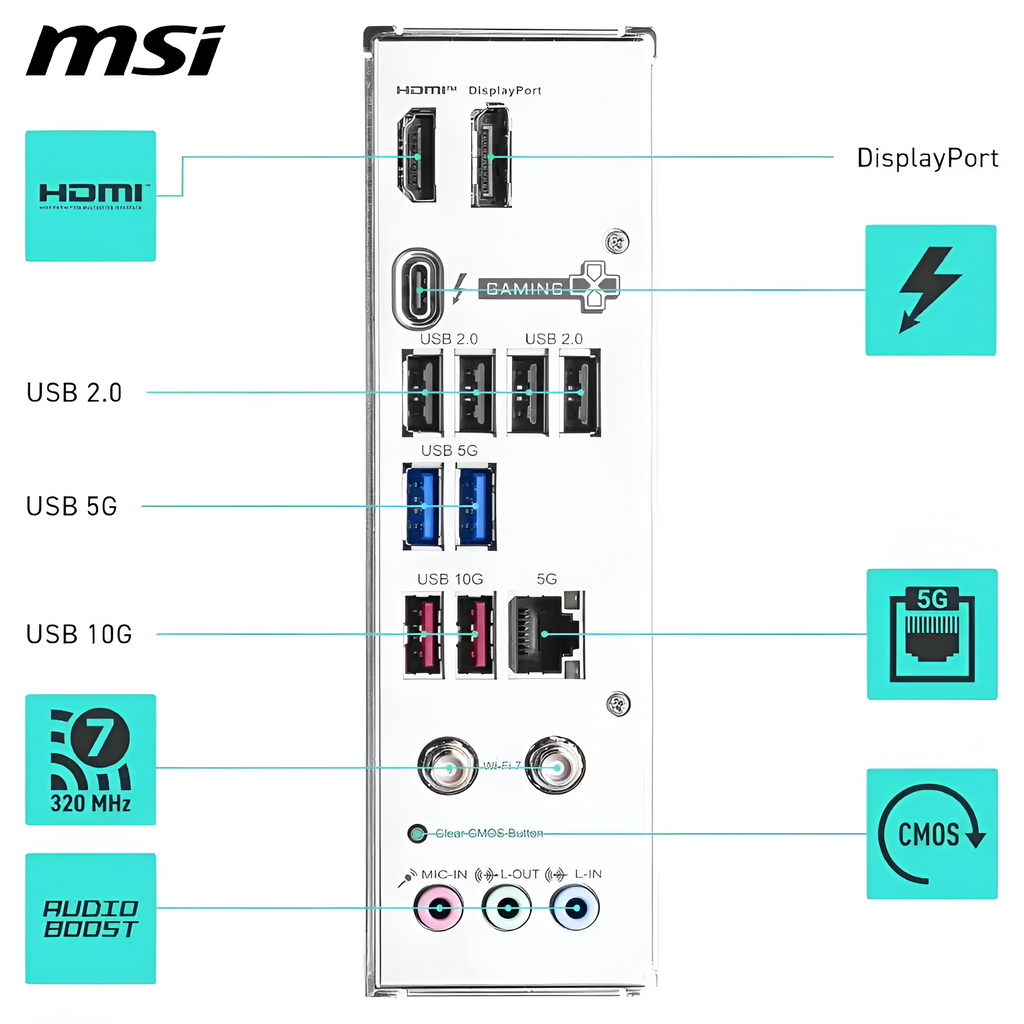 • 4× DDR5 slotsup to 256 GB @ 8800 MT/s (OC) with Intel XMP 3.0 and MSI Memory Boost for low-latency 5600 JEDEC fallback